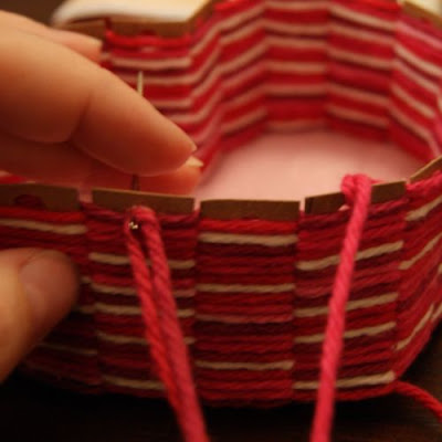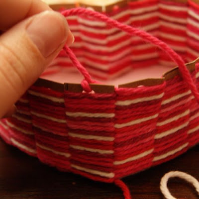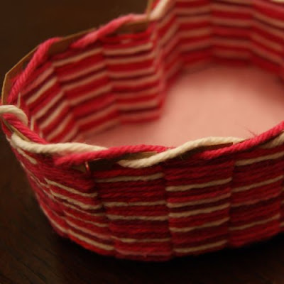 Today, I want to show you a heart-shaped basket I wove on a cardboard frame with some yarn. I love how it turned out!