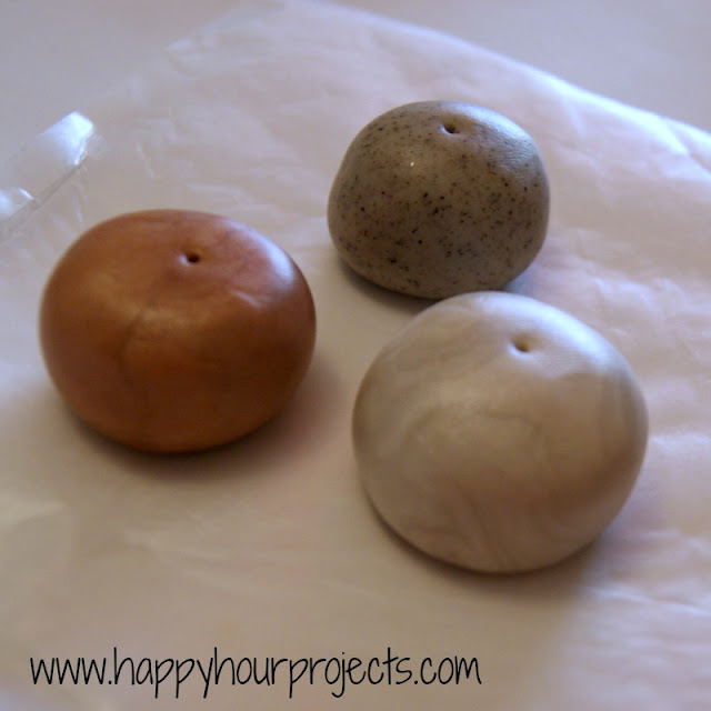 Check your package directions – Sculpey bakes at 275 F for 30 minutes per 1/4 inch (90 minutes total for these). But go by whatever your package tells you to, especially if you are using a different brand. I had three bases rolled out and ready to go in the amount of time it took my oven to preheat. Then, just let them bake while you play with your kids, clean your kitchen – whatever you need to work on for a while.